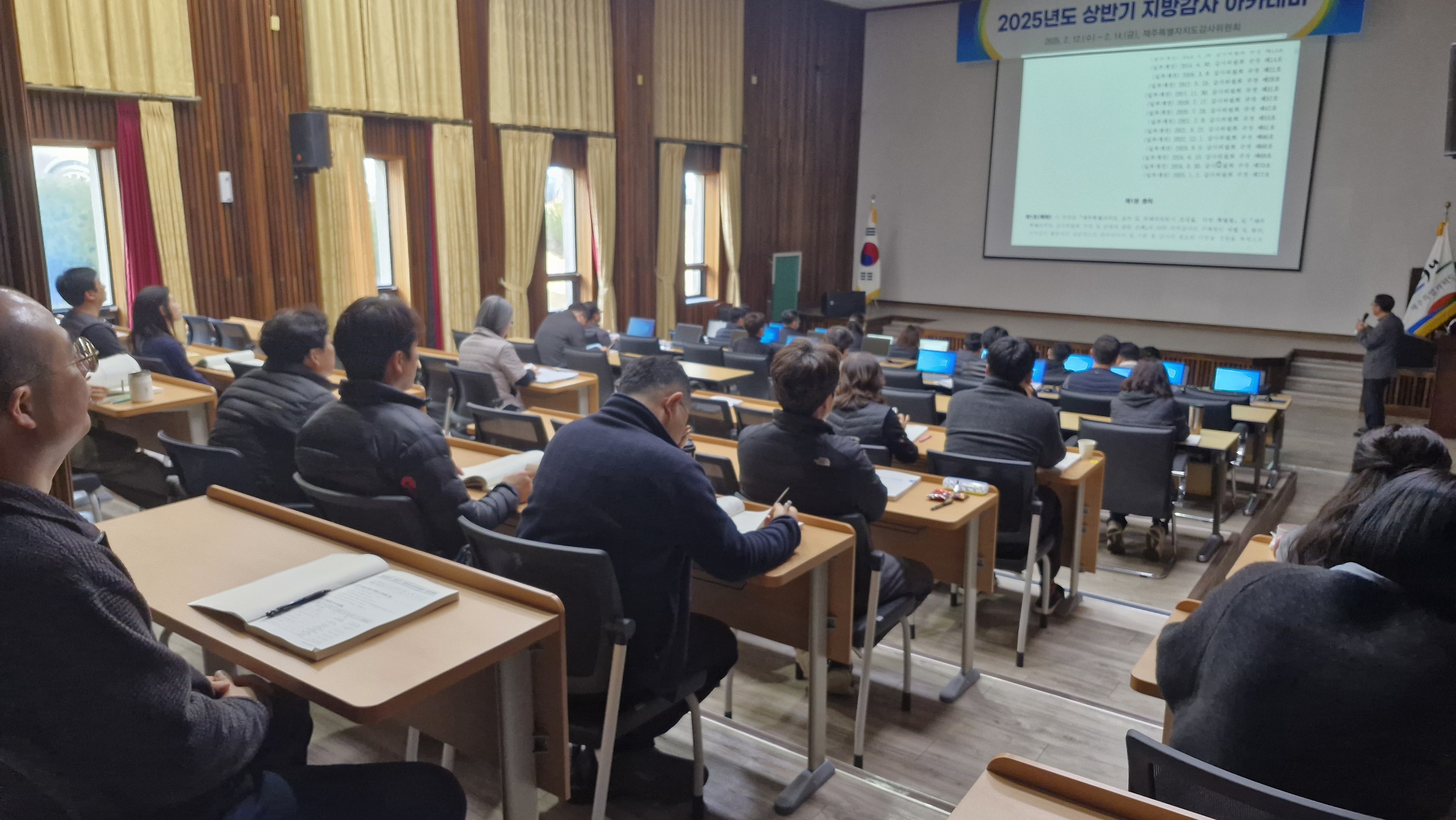 □ 제주특별자치도감사위원회(위원장 강기탁)에서는 2025. 2. 12.부터 2. 14.까지 감사위원회 및 자체 감사기구 소속 직원(도 교육청, 자치경찰위원회) 등 80여 명을 대상으로 ‘2025 상반기 지방감사아카데미’를 개최한다고 밝혔다.